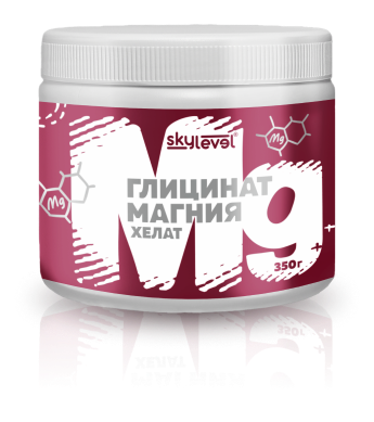 Глицинат магния - это одна молекула магния хелатно (от лат. chela — клешня) связана с двумя молекулами аминокислоты глицин. Содержит 14% элементарного магния по массе.